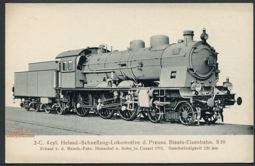 2 C-Heissdampt-Vierzylinder-Verbund-Schnellzuglokomotiveder Preussischen Staatsbahn Serie S10.Serie 17 n°8