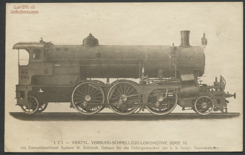 2 C Viercyl. Verbund Heissdampt-Schnellzugslok.S 10 der kgl. preussischen St. B. mitRauchröhren-Überhitzer Patent W. Schmidt.Die Lokomotive - Wien - Serie XII n°68. |