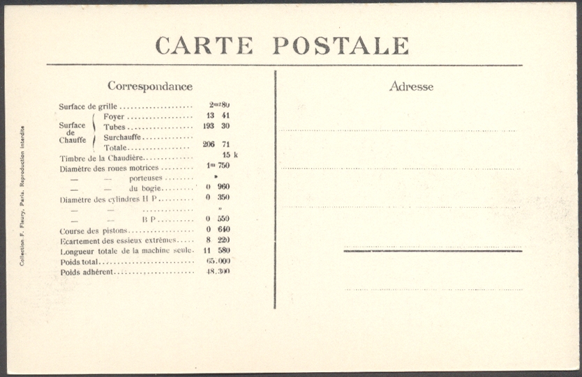 Les Locomotives.Machine de grande vitesse type "Atlantic" de grande vitesse.Série 2900.F. Fleury n°10 |